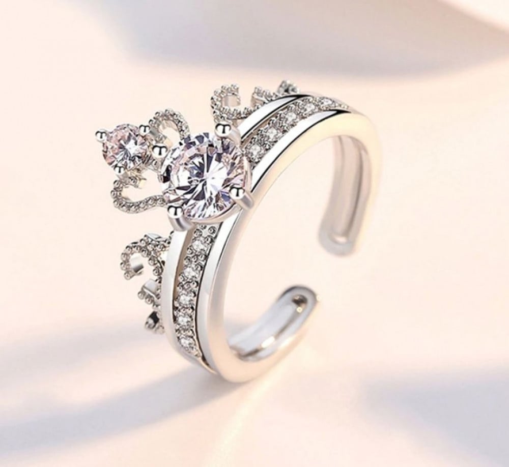 خاتم نسائي من قطعتين مزين بكريستالات لامعه بقياس قابل للتعديل - فضي