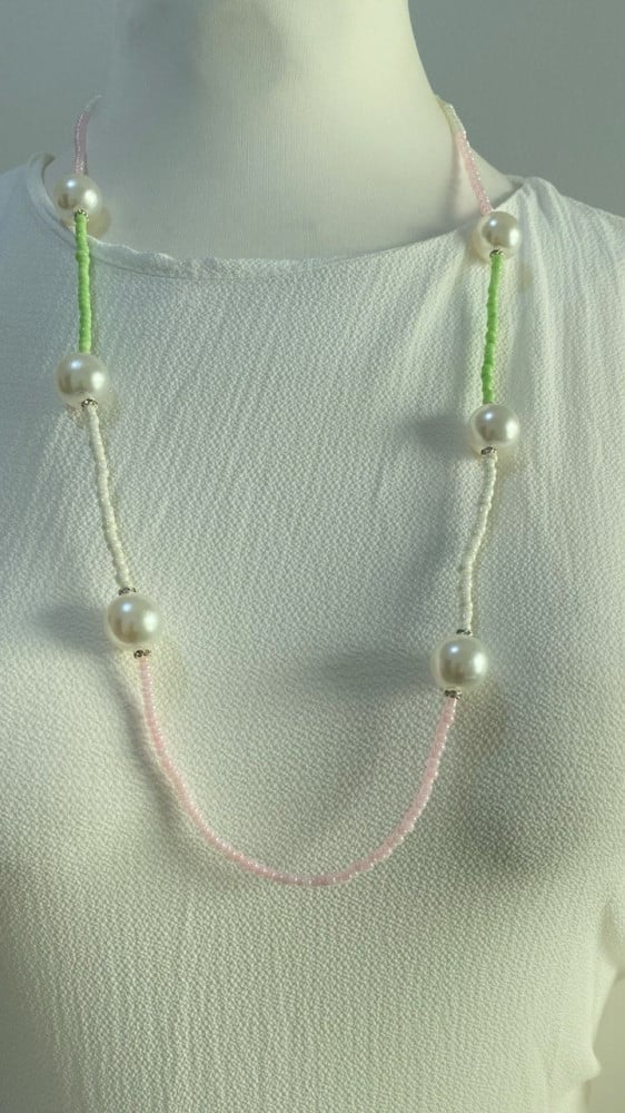 قلادة خرز باللون الوردي